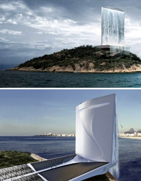 巴西巨型發電塔 RAFAA建筑設計事務所為2016年巴西里約熱內盧奧運會設計的“太陽能城市塔”可在白天利用太陽能發電,日落后再利用抽蓄水系統發電。它的最大亮點當屬一個又大又高的瀑布,好像來自天空,給人一種超現實的感覺。發電塔將為奧運會提供大量電量,象征大自然力量的瀑布傾瀉而下場面只在特定場合時出現。 |