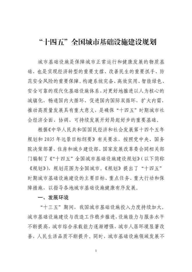 住建部、發(fā)改委印發(fā)實施《“十四五”全國城市基礎設施建設規(guī)劃》