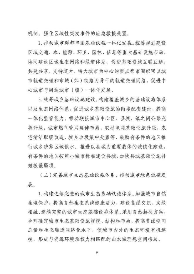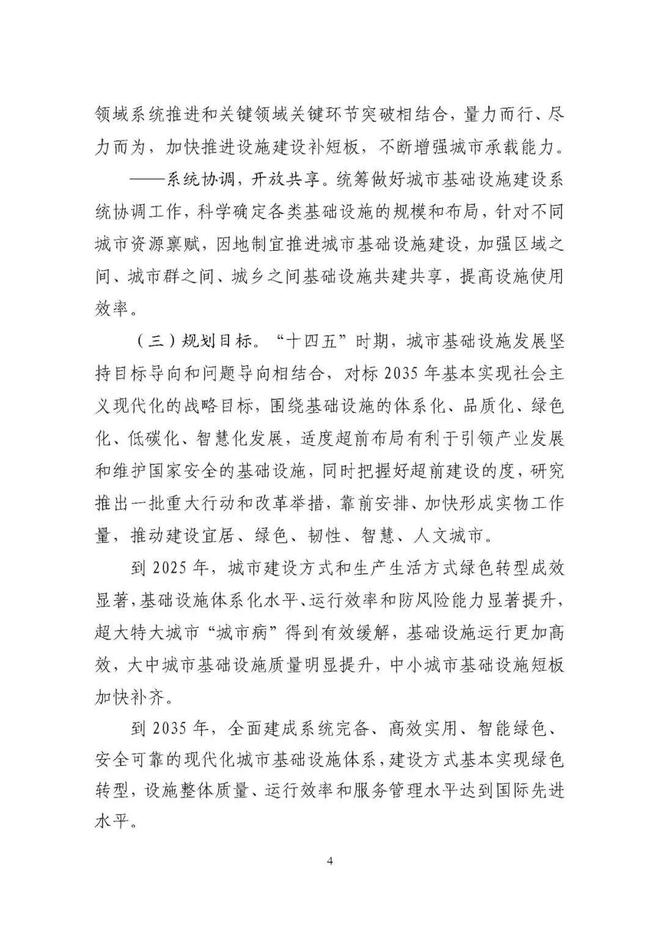 《規(guī)劃》圍繞構建系統(tǒng)完備、高效實用、智能綠色、安全可靠的現代化基礎設施體系,提出4方面重點任務。一是推進城市基礎設施體系化建設,增強城市安全韌性能力。二是推動城市基礎設施共建共享,促進形成區(qū)域與城鄉(xiāng)協(xié)調發(fā)展新格局。三是完善城市生態(tài)基礎設施體系,推動城市綠色低碳發(fā)展。四是加快新型城市基礎設施建設,推進城市智慧化轉型發(fā)展。