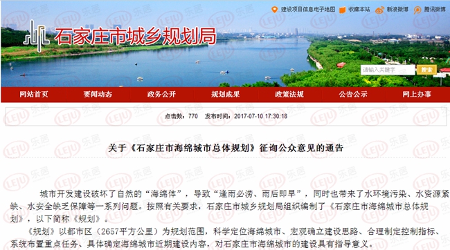 從石家莊市城鄉規劃局網站獲悉,關于《石家莊市海綿城市總體規劃》征詢公眾意見的通告發布。《規劃》以都市區(2657平方公里)為規劃范圍。具體來看,石家莊市海綿城市總體規劃涉及區域包括中心城區、正定新區、鹿泉區、欒城區、藁城區以及正定縣。