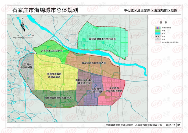 海綿功能規劃中包括新區海綿城市引領示范區、太平河水生態保護區、上游雨水徑流削減區、滹沱河雨水自然滲透區、高密度老城區海綿改造區、高新區海綿城市建設提升區、南部新城海綿城市建設區、工業雨水綜合利用區、工業雨水徑流污染控制區。