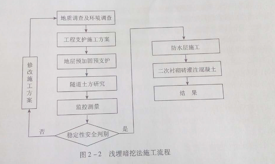 隧道施工方法淺埋暗挖法是在距離地表較近的地下進行各種類型地下洞室暗挖施工的一種方法。繼1984年王夢恕院士在軍都山隧道黃土段試驗成功后,又于1986年在具有開拓性、風險性、復雜性的北京復興門地鐵折返線工程中應用,在拆遷少、不擾民、不破壞環境下獲得功。同時,結合中國的地域特點及水文地質系統,創造了小導管超前支護技術、8字形網構鋼拱架設計、制造技術、正臺階環形開挖留核心土施工技術和變位進行反分析計算的方法,提出了“管超前、嚴注漿、短進尺、強支護、早封閉、勤量測”十八字方針,突出時空效應對防塌的重要作用,提出在軟弱地層快速施工的理念。由此形成了淺埋暗挖法,創立了適用于軟弱地層的地下工程設計、施工方法。