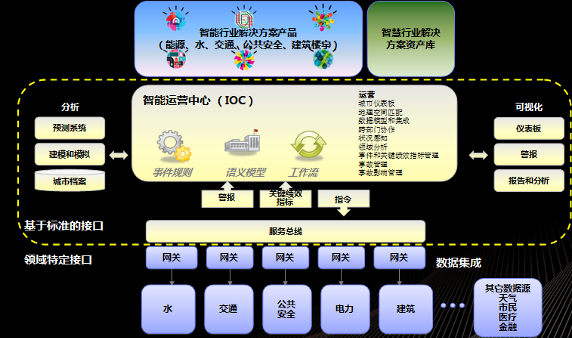 作為智慧城市理念的倡導(dǎo)者和先行者,IBM 在過(guò)去的三年的時(shí)間,通過(guò)研發(fā)和收購(gòu)等,發(fā)布了一系列的智慧城市實(shí)現(xiàn)軟件產(chǎn)品和解決方案。2011 年 6 月,IBM 發(fā)布了智慧運(yùn)營(yíng)中心(IOC)產(chǎn)品,同年 7 月發(fā)布了智慧運(yùn)營(yíng)中心云產(chǎn)品。IBM 的智能運(yùn)營(yíng)中心解決方案旨在方便高效地監(jiān)管和協(xié)調(diào)智慧城市運(yùn)營(yíng),通過(guò)將各種信息匯集在一起,提供給相關(guān)的人員快速而準(zhǔn)確地作出決策并且跟蹤這些決策的效果的能力。