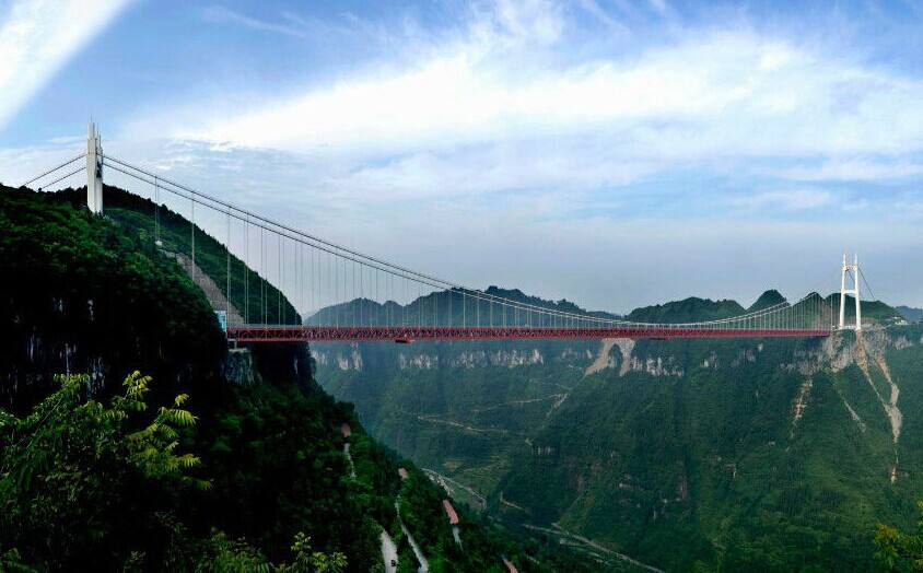 橋面支承在懸索(通常稱大攬)上的橋稱為懸索橋。英文為Suspension Bridge,是"懸掛的橋梁"之意,故也有譯作"吊橋"的。"吊橋"的懸掛系統(tǒng)大部分情況下用"索"做成,故譯作"懸索橋",但個(gè)別情況下,"索"也有用剛性桿或鍵桿做成的,故譯作"懸索橋"不能涵蓋這一類(lèi)用橋。和拱肋相反,懸索的截面只承受拉力。簡(jiǎn)陋的只供人、畜行走用的懸索橋常把橋面直接鋪在懸索上。通行現(xiàn)代交通工具的懸索橋則不行,為了保持橋面具有一定的平直度,是將橋面用吊索掛在懸索上。和拱橋不同的是,作為承重結(jié)構(gòu)的拱肋是剛性的,而作為承重結(jié)構(gòu)的懸索則是柔性的。為了避免在車(chē)輛駛過(guò)時(shí),橋面隨著懸索一起變形,現(xiàn)代懸索橋一般均設(shè)有剛性梁(又稱加勁梁)。橋面鋪在剛性梁上,剛性梁吊在懸索上。現(xiàn)代懸索橋的懸索一般均支承在兩個(gè)塔柱上。塔頂設(shè)有支承懸索的鞍形支座。承受很大拉力的懸索的端部通過(guò)錨碇固定在地基中,個(gè)別也有固定在剛性梁的端部者,稱為自錨式懸索橋。
