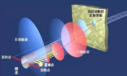 利用地震波在不均勻地質體中產生的反射波特性來預報隧洞掌子面前方及周圍臨近區域的地質情況,可以檢測出掌子面前方巖性的變化,可以在鉆爆法或TBM開挖的隧道中使用,而不必接近掌子面。該法有效預報距離100~200m。