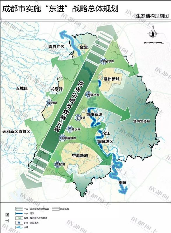 今年,在龍泉山城市森林公園規劃后,東進區域范圍有所調整,涵蓋金堂縣、簡陽市全域、龍泉驛區車城大道以東區域以及青白江區、天府新區直管區位于龍泉山森林公園范圍內的區域(共涉及7個鄉鎮),總面積為3976平方公里。