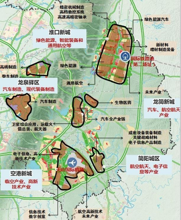 簡陽新城:航空航天、電子信息等產業,包含成套設備裝備制造、關鍵戰略材料、電子信息產品制造等