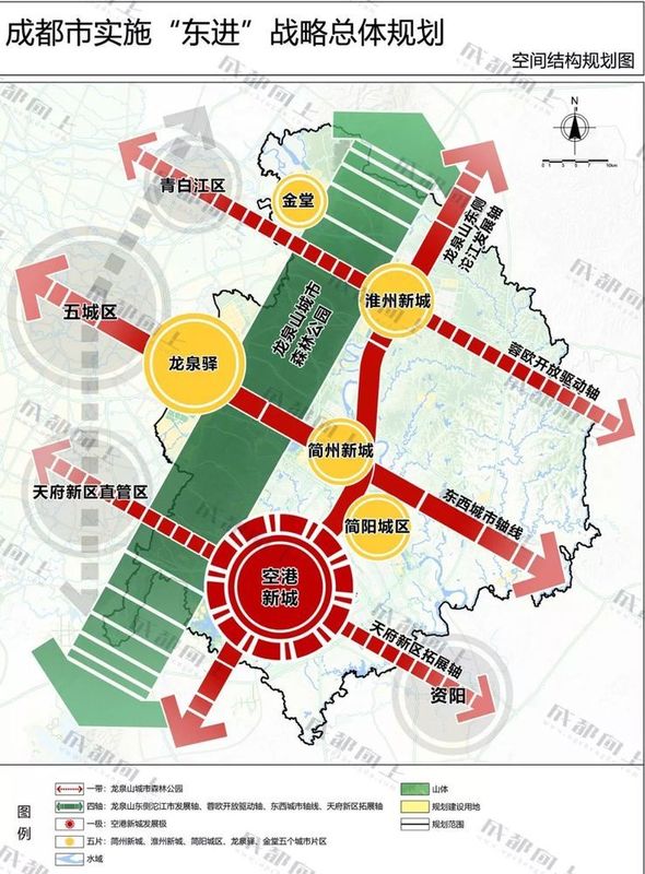 日前,成都規劃局官網公布了《<成都市實施“東進”戰略總體規劃(2017-2035年)>公眾意見征集稿》,從定位、目標、產業、生態等各方面規劃,詳細闡釋了 “ 東進 ” 到底該怎么 “ 進 ”