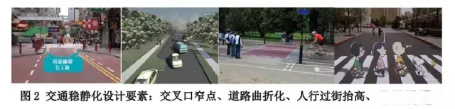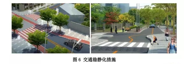 因此,在城市支路級別道路改造中,我們引入了城市交通穩靜化(Traffic calming)理念,通過壓縮機動車道寬度、設置道路線型曲折化、縮小轉彎半徑以及路面鋪裝材料變化等措施,減少社區穿越性交通,實現對車速的管控,以保障居民出行及活動安全。