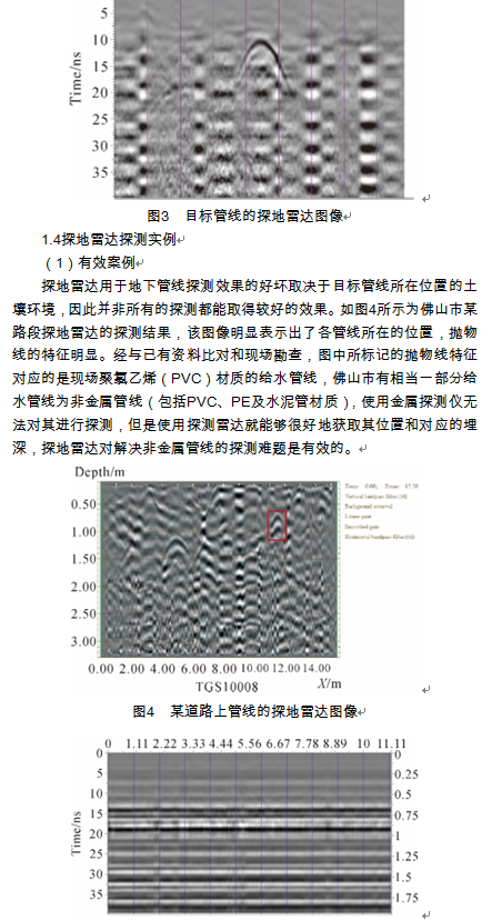 (2)探地雷達(dá)用于管線探測