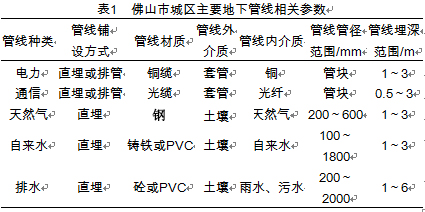 當(dāng)今,城市的地下埋藏著無數(shù)的地下管線,是城市運(yùn)轉(zhuǎn)的命脈組成部分而且隨著城市的不斷發(fā)展,其埋設(shè)環(huán)境的復(fù)雜度日益提升,導(dǎo)致地下管線探測難度的直線上升。以佛山市中心城區(qū)為例,其各條主干道均鋪設(shè)有電力、通信、天然氣、自來水、排水等各類生活配套管線。隨著市區(qū)房地產(chǎn)項(xiàng)目的開發(fā),道路上鋪設(shè)的管線數(shù)量越來越多、管線的管徑越來越大、管線的走向也越來越復(fù)雜,對(duì)城市管線探測提出了更高的要求,特別是近年來非金屬材質(zhì)管線的鋪設(shè)為管線探測帶來了新的難題,見表1。