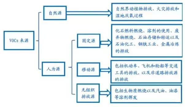 在眾多人為源中,工業(yè)源是主要的VOCs污染來源,具有排放集中、排放強(qiáng)度大、濃度高、組分復(fù)雜的特點(diǎn)。