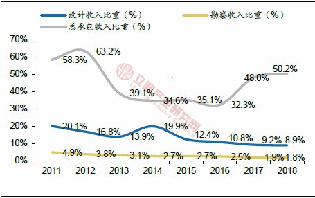 ——隨著總承包模式的推廣和PPP模式的快速推進,設計行業發展趨勢使工程總承包的收入比重提升。
