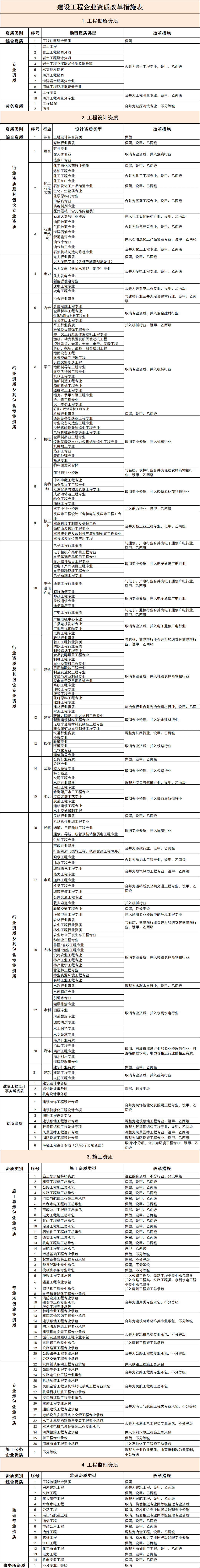 1、 建設(shè)工程企業(yè)資質(zhì)改革措施表