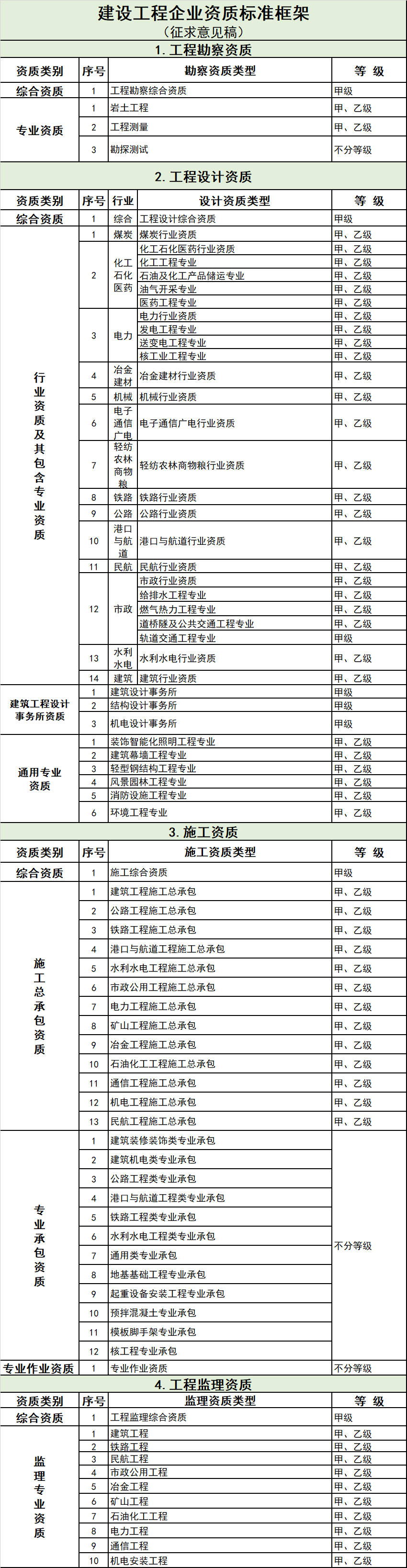 2、建設(shè)工程企業(yè)資質(zhì)標(biāo)準(zhǔn)框架(征求意見稿)