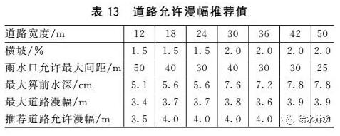 道路坡度調整表14為道路縱坡為0.1%時的雨水口最小布置間距(滿足表13漫幅要求)。