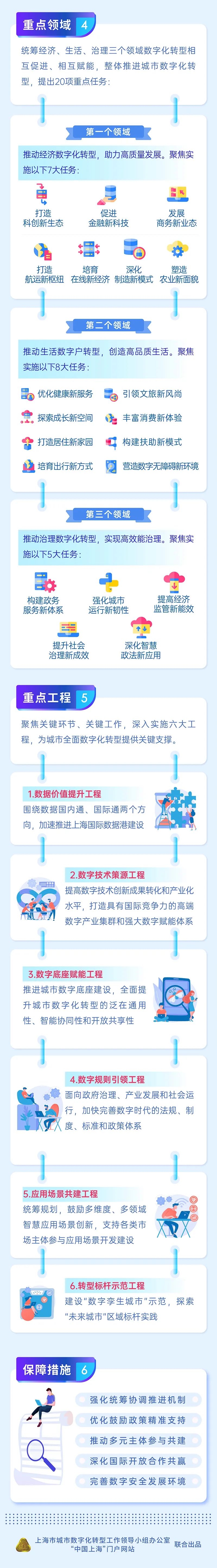 四是完善保障體系,構(gòu)建數(shù)字化轉(zhuǎn)型新生態(tài)。完善數(shù)字時(shí)代的法規(guī)、制度、標(biāo)準(zhǔn)和政策體系,研究推進(jìn)《上海市數(shù)據(jù)條例》《上海市城市數(shù)字化轉(zhuǎn)型促進(jìn)條例》綜合性立法和若干專項(xiàng)立法。加強(qiáng)經(jīng)濟(jì)數(shù)字化轉(zhuǎn)型的制度供給,優(yōu)化市場(chǎng)準(zhǔn)入制度,探索新型監(jiān)管機(jī)制。完善生活數(shù)字化轉(zhuǎn)型的規(guī)則規(guī)范,加強(qiáng)數(shù)字信用體系建設(shè),建立數(shù)字社會(huì)權(quán)益保護(hù)機(jī)制。同時(shí),強(qiáng)化統(tǒng)籌協(xié)調(diào)推進(jìn)機(jī)制,優(yōu)化鼓勵(lì)政策精準(zhǔn)扶持,推動(dòng)多元主體參與共建,深化國(guó)際開(kāi)放合作共贏,完善數(shù)字安全發(fā)展環(huán)境,為城市數(shù)字化轉(zhuǎn)型提供全方位保障。