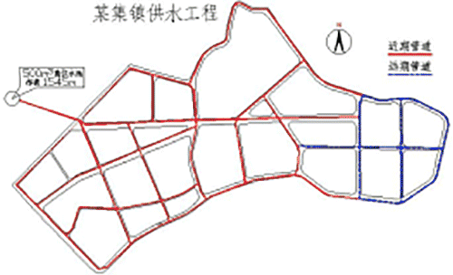 (6)技術可行的前提下,考慮經濟因素。管網建設的投資一般較大,工程籌資一般比較困難,多有貸款部分,因此設計考慮盡量節約工程投資。以最短的管線提供最大的給水范圍,從經濟、安全、運輸、施工、維護管理費用低等因素綜合考慮管網定線。