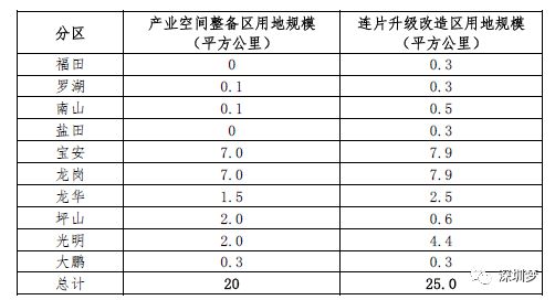 2.規劃期內,全市城市更新和土地整備實施規模不少于95平方公里。其中,完成綜合整治用地不少于45平方公里,完成直接供應用地10平方公里和空間儲備用地40平方公里。
