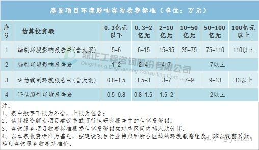 環境影響咨詢取費可參考《建設項目環境影響評價收費標準》(計價格〔2002〕125號),以估算投資額為計費基數,根據建設項目不同的性質和內容,采取按估算投資額分檔定額方式計費。