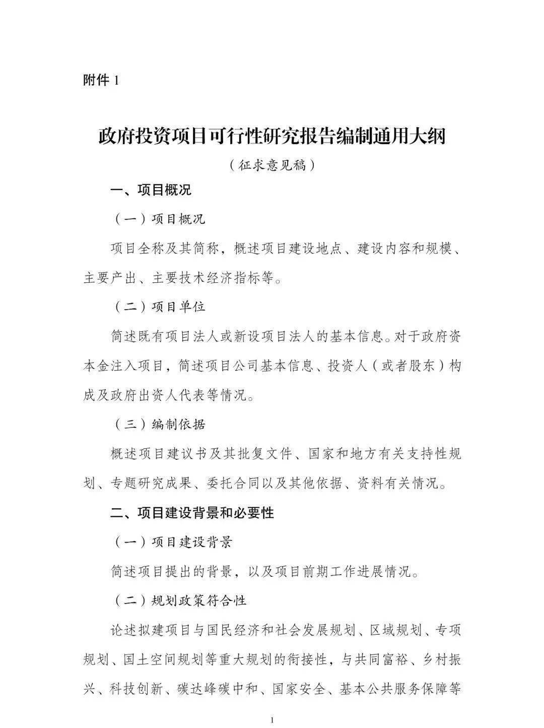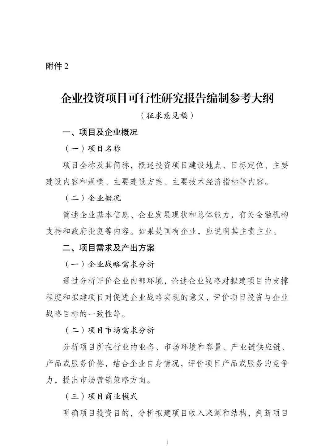 重磅!國家發(fā)改委發(fā)布政府和企業(yè)《投資項目可行性研究報告編制參考大綱》意見稿