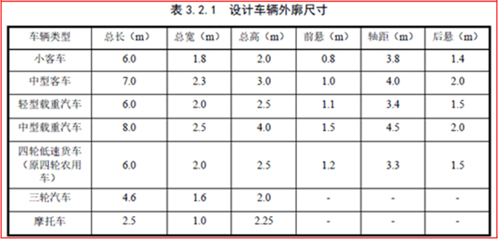 《規(guī)范》表3.2.1 設(shè)計(jì)車(chē)輛外廓尺寸