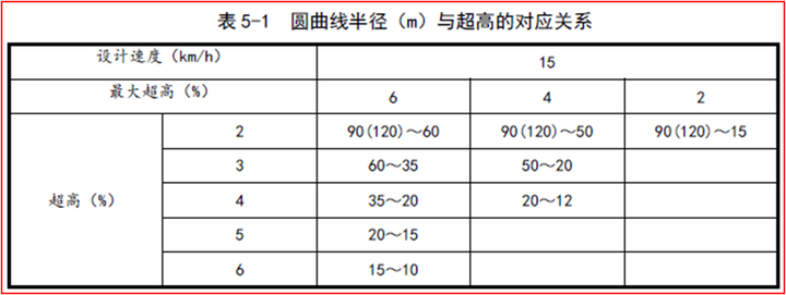《規(guī)范》表5-1 圓曲線半徑(m)與超高的對(duì)應(yīng)關(guān)系