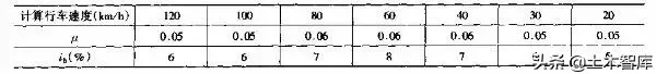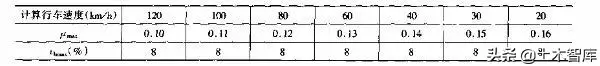 umin——最大超高橫坡度,見表1-2-1。