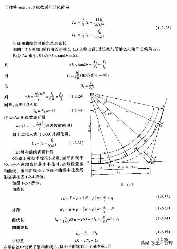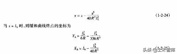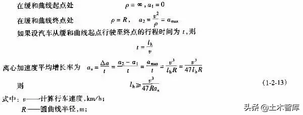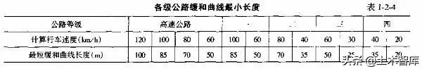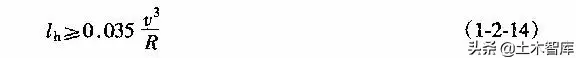 上式表明.最短的緩和曲線與半徑的大小無關,即使平曲線半徑較大,當汽車高速行駛時,也應有個轉變過程,因而式(1-2-15)是高等級公路設置緩和曲線的校核式。