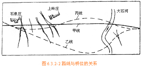 時)或河溝過于彎曲的情況,可采取改河措施或改移路線,調整橋軸線與流向的夾角,以免過分增加施工困難和加大工程投資,選線時應全面比較確定。
