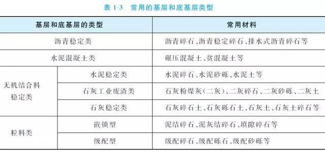 修筑基層和底基層的材料主要有各種結(jié)合料(如石灰、水泥、瀝青等)穩(wěn)定土或穩(wěn)定碎(礫)石、貧水泥混凝土、天然砂礫、碎石、礫石、片石、塊石,各種工業(yè)廢渣(如煤渣、粉煤灰、礦渣、石灰渣等)和土、砂、石所組成的混合料等。常用的基層和底基層類型見表1-3。