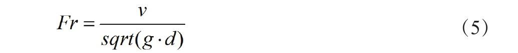 (2)確定管道尺寸。根據最大流量和施工要求,確定排水管道的直徑或斷面形狀[8]。在確定管道尺寸時,需要考慮管道自清潔速度、懸沙能力和維護性等因素。管道的自清潔速度是指在正常流量下,管道內部能夠將積聚的污物、雜物和沙粒沖刷走的速度,采用Froude數可判定管道自清潔度,其計算公式見式(5)。