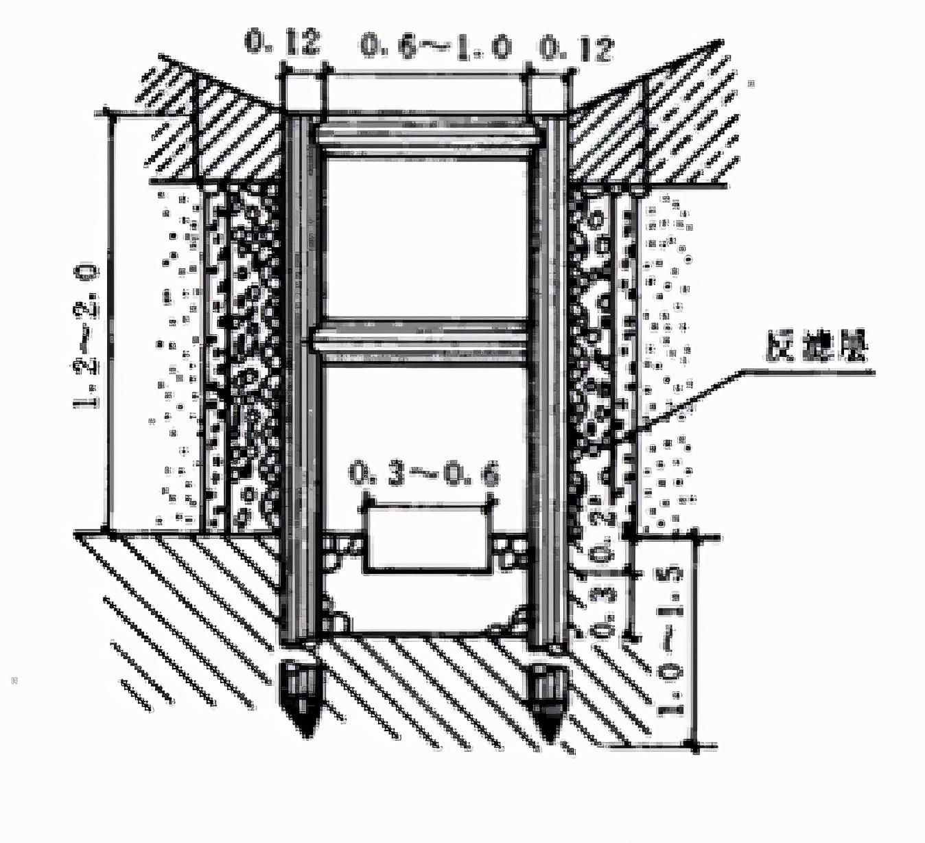 ② 截水滲溝應(yīng)在滲流上游一側(cè)溝壁進(jìn)水、下游處溝壁應(yīng)不透水并設(shè)置相應(yīng)的防滲層;