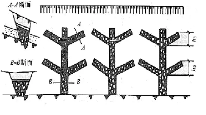 • 邊坡滲溝主要有拱形和樹枝形兩類;應(yīng)垂直嵌入邊坡;外圍應(yīng)設(shè)置反濾層。