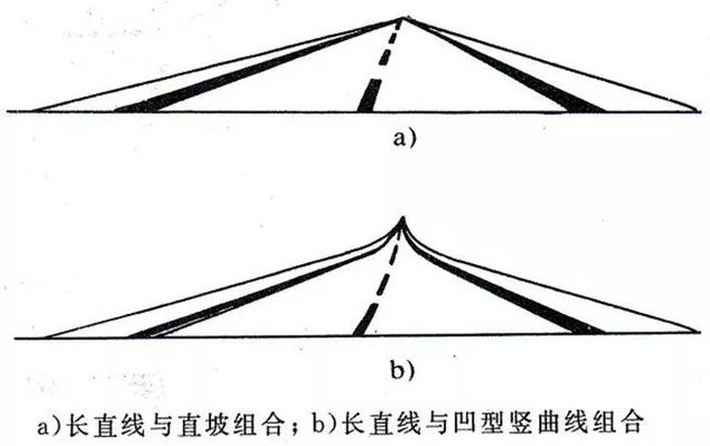 1、長直線宜與大半徑凹豎曲線組合使用
