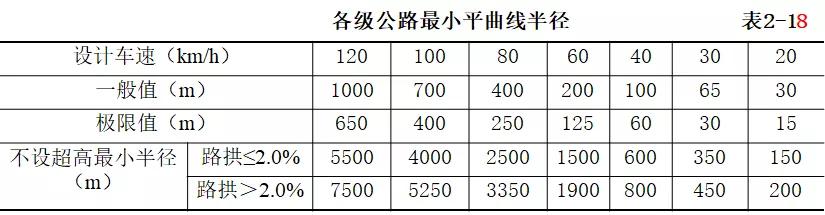 1、三種平曲線最小半徑