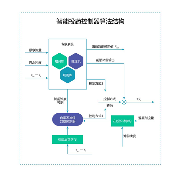 智能加藥系統(tǒng)像人類大腦一樣具備接收、存儲、分析信息等功能,基安云智能加藥系統(tǒng)采用 “前饋 + 反饋”的閉環(huán)控制模式。