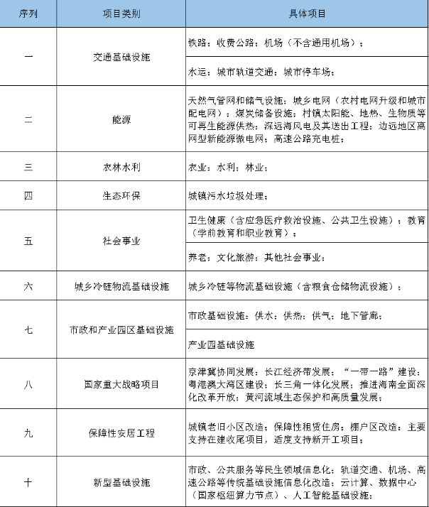 再次熟悉專項債所支持的領域: